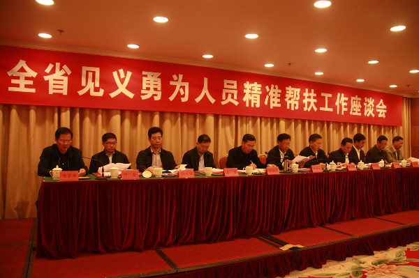 省人大原副主任袁锦贵做重要讲话,对见义勇为英模表示崇高敬意,对省见义勇为基金会在精准帮扶工作上所作的努力给予高度赞赏,希望各级各部门深入贯彻中央和省委、省政府关于精准扶贫的工作要求,进一步做好见义勇为特困人员的精准帮扶工作。