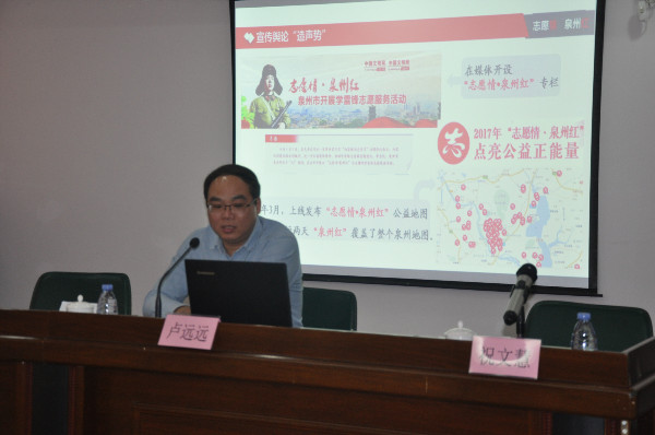 随后,与会人员参加了志愿云系统培训。由市委文明办志愿服务工作负责人、泉州市志愿者协会秘书长卢远远,市志愿者协会理事祝文慧介绍泉州市志愿者服务的概况以及志愿云系统的应用。通过此次培训让参会的全市见义勇为工作人员对泉州志愿者组织和志愿活动的有了更深刻的认识。同时,也初步了解全国志愿云系统的运用。对今后进一步组织见义勇为志愿者队伍,开展见义勇为志愿者活动是个极大的帮助。