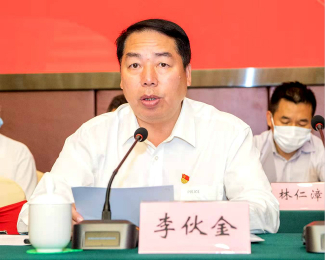 市政府副市长、工委会主任、市公安局局长李伙金主持表彰大会
