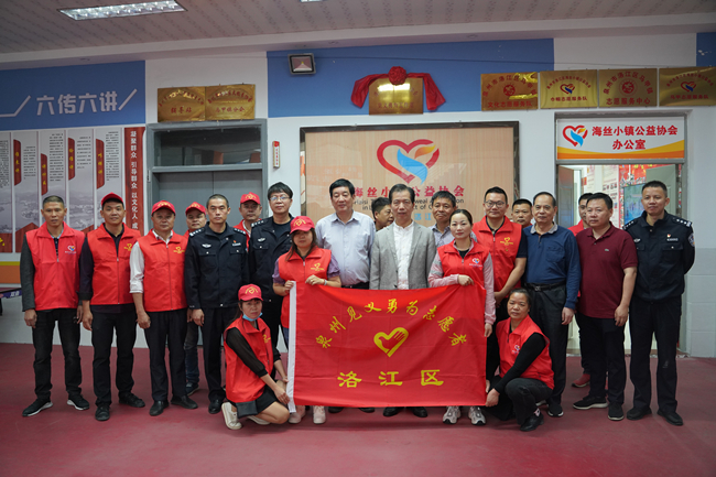 4月27日上午,在洛江区委常委、政法委书记黄清凯,洛江公安分局党委委员、政工室主任黄奕林等相关领导的陪同下,市见义勇为协会会长李永木、副会长兼秘书长吕良研一行来到马甲镇的“刺桐花志愿服务队”和“海丝小镇公益团队”考察参观,并为新成立在这里的两个见义勇为工作室举行揭牌。
