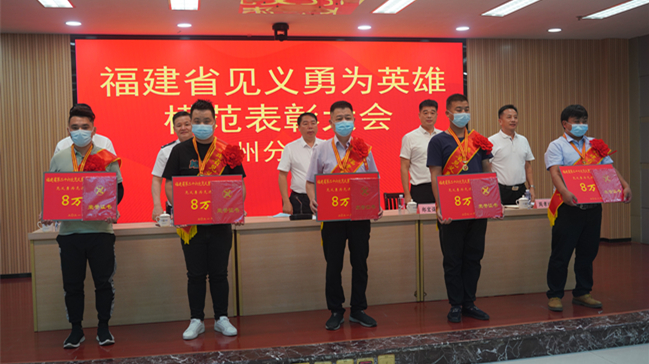 会议宣读了省政府、省见义勇为人员奖励和保护工作委员会的表彰决定,授予第二十六次表彰对象陈江桥“福建省见义勇为英雄”,授予侯艳梅等8人“福建省见义勇为模范”,对林元等25名见义勇为先进个人(群体)给予嘉奖;授予第二十七次表彰对象施尉珍等7人“福建省见义勇为模范”,对郑容等33名见义勇为先进个人(群体)给予嘉奖。