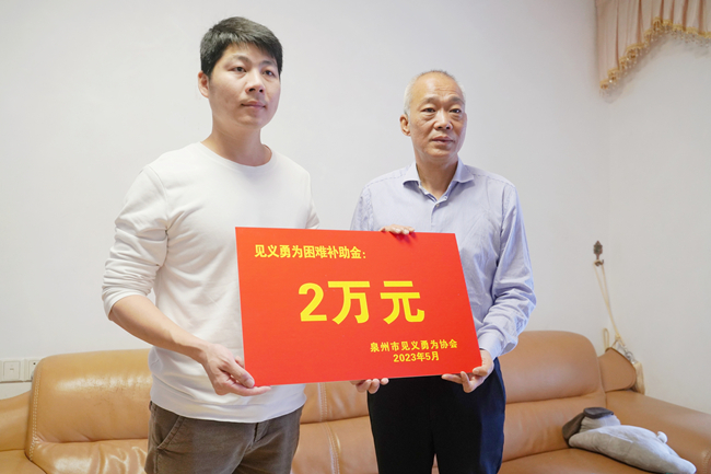 5月11日上午,市见义勇为协会会长柳新群、副会长李锦林等,在原会长李永木的陪同下,前往永春见义勇为人员何繁强家看望慰问。何繁强系2008年受市表彰的见义勇为先进分子。因儿子患病,需经常进行费用高昂的康复治疗和特殊教育,导致入不敷出、背负巨债,只得向永春县见义勇为协会求助。永春县见义勇为协会在寻求解决办法的同时,向泉州市见义勇为协会反映。