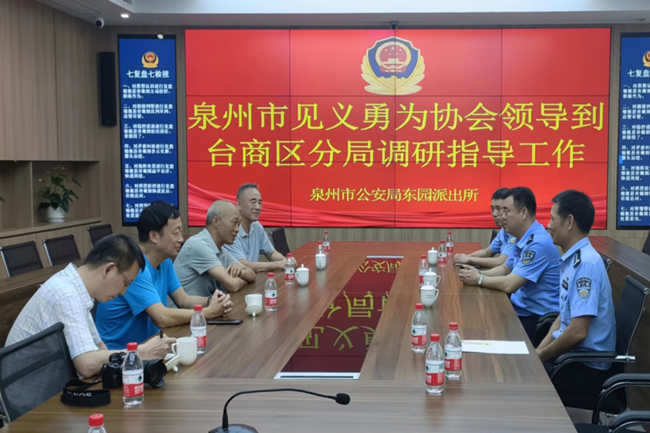 8月18日下午,泉州市见义勇为协会会长柳新群一行到泉州市公安局台商投资区分局调研指导见义勇为工作。分局党委副书记、政委王培钦,分局党委委员、政工室主任林汉城,泉州台商区见义勇为工作协会及东园派出所相关人员参加调研。