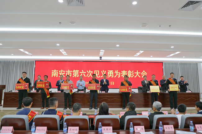 12月1日上午,南安市在公安局技术综合大楼一楼会议室隆重召开见义勇为先进个人(群体)暨见义勇为先进工作站表彰大会。南安市委副书记、市长王连赞出席大会并作重要强调讲话。市委常委政法委书记黄队强,市人大常委会副主任黄梓奇,市人民政府副市长、市见义勇为工委会主任、公安局长曾伟军,市政协副主席黄清地,泉州市见义勇为协会副会长李锦林,市政府办公室主任周庆喜,市见义勇为工委会副主任、市公安局政委王晓东,市公安局党委委员、政工室主任吴锦良,市见义勇为协会会长王鼎南等领导出席会议。市人民政府副市长曾伟军主持会议。