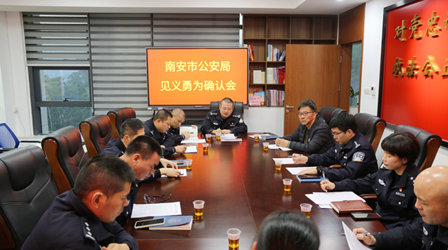 12月28日下午,南安召开见义勇为行为确认会。公安局党委委员、政工室主任吴锦良,见义勇为协会会长王鼎南、副会长兼秘书长陈清流,见义勇为办公室成员,柳城派出所经办民警等14人参加会议。会议由局政工室副主任、见义勇为办公室副主任黄雪晖主持。