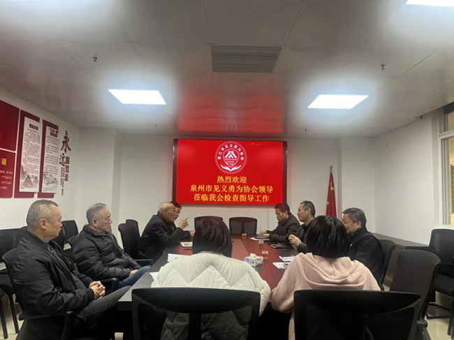 4月1日下午,泉州市见义勇为协会会长柳新群、副会长陈健、李锦林、吴天进一行到晋江市调研指导见义勇为工作,晋江市公安局党委委员、政工室主任施文生、晋江市见义勇为协会会长陈永聪等陪同。