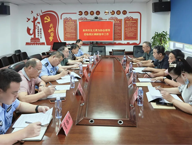 8月1日上午,泉州市见义勇为协会副会长梅永、陈健、李锦林等领导到台商区调研指导见义勇为工作。台商区公安分局党委委员谢军垦、区见义勇为工作协会会长骆东明等陪同。