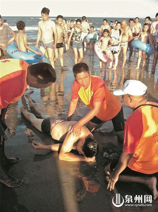 早报讯 (记者龚翠玲 王盼琛 文/图)昨天下午5时50分,在石狮永宁红塔湾,石狮市海泳协会海上义务救生队队员救起了八条宝贵的生命,不幸的是,有一名游客救起后经抢救无效不幸身亡。