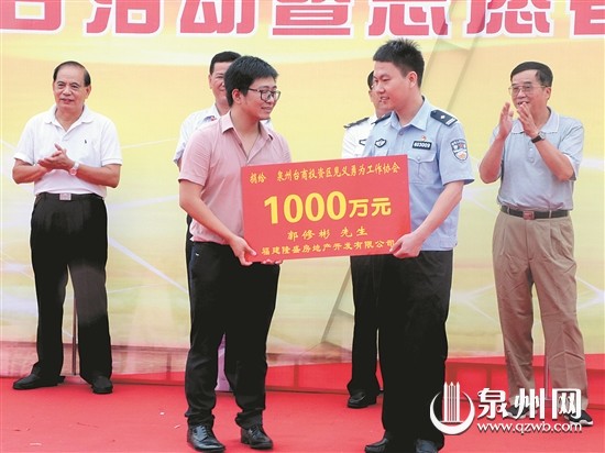 会上,福建隆盛房地产开发有限公司董事长郭修彬先生的儿子郭先生向台商区见义勇为工作协会捐赠1000万元。郭先生介绍,父亲是百崎回族乡人,常年热心于家乡的公益事业,这次也是代父亲为台商区见义勇为事业出一份绵薄之力,分期捐出1000万元作为见义勇为基金。据悉,活动中还为台商区见义勇为人员颁发免费健康体检卡及公交卡,并开展见义勇为主题宣传日活动。