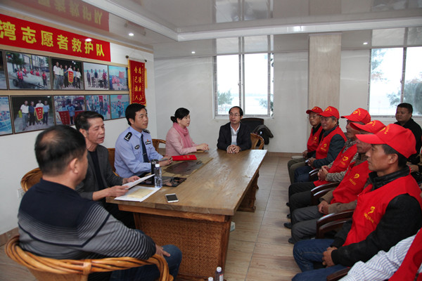 惠安县山霞镇青山湾海上救护见义勇为志愿者服务队在泉州市第十五次见义勇为模范暨见义勇为志愿者先进集体表彰大会上荣获“泉州市见义勇为志愿者优秀集体”称号。为进一步激发广大群众参与见义勇为志愿者服务活动的热情,11月11日下午,惠安县公安局政委郑金阳与县见义勇为协会会长陈海防等同志到山霞镇与见义勇为志愿者们开展表彰慰问及座谈活动。山霞镇镇长郭雅婷及部分被救群众家属来到现场一同座谈。