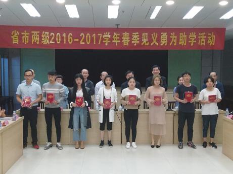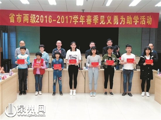 吕良研介绍了全市见义勇为助学对象的相关情况。与会领导为58名省、市见义勇为助学对象颁发了17.7万元助学金,同时为8名“我与见义勇为”征文获奖同学颁发奖状。这期间,省、市见义勇为助学对象代表作了发言。