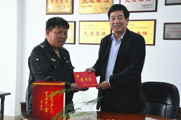 1月25日早上,市见义勇为协会副会长吴良建一行,在南安市公安局政委曾伟军及南安协会领导的陪同下,专程前往南安市开展新春慰问活动,看望1995年因见义勇为牺牲的杨用艺同志的遗属。吴良建转达了省、市两级见义勇为基金会(协会)领导的关心和慰问,对杨用艺的牺牲表示哀悼,对其家属表示深切问候,并和曾伟军政委分别送上3000元慰问金。