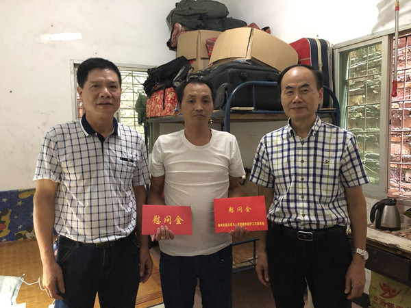 今年4月份,我会得知顾金忠在湖北老家被小车撞了,身上多处受伤,在医院里住了半个月才恢复。考虑到他家目前生活实在困难,市协会与洛江协会一致决定慰问顾金忠困难补助金3千元。这次他一回泉州,我会便联系上他,及时的将这笔困难补助金送到顾金忠手中,顾金忠很是感激,感谢协会对他的关心和帮助,现阶段他还没有工作,这笔补助金帮他解决了当下的生活问题。