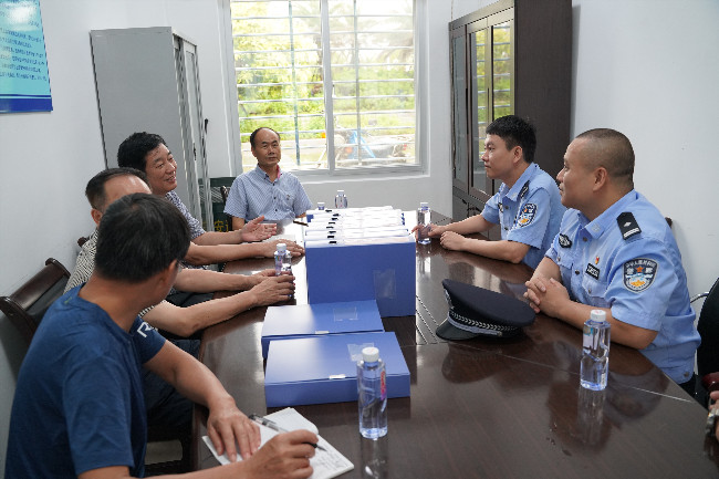 7月22日,在台商投资区公安分局党委委员、政工室主任卓鸿杰的陪同下,我会会长李永木、副会长蔡永抽、吴良建、贾常舜等人到浮山边防派出所见义勇为工作站检查指导工作。