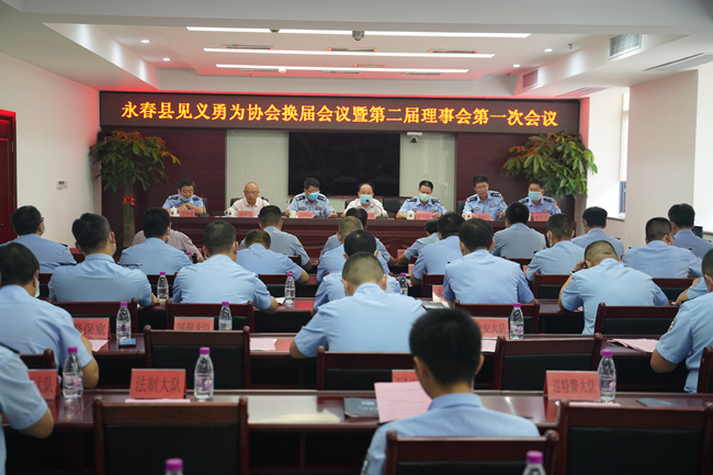 7月17日,永春县见义勇为协会举行换届,县公安局党委副书记、政委陈飞腾,副局长、县见义勇为协会会长潘朝东,泉州市见义勇为协会副会长贾常舜等应邀出席。