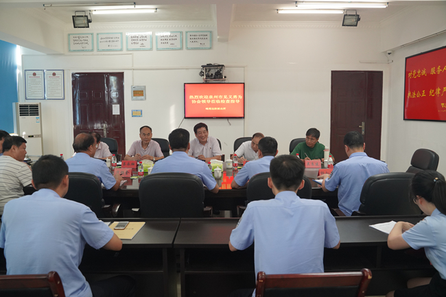 日前,市见义勇为协会再度深入惠安、泉港两地调研见义勇为工作站建设。22日,李永木会长一行来到泉港区峰尾边防派出所见义勇为工作站,在泉港公安分局政委王福东、政工室主任林炳坤等相关领导的陪同下,听取边防派出所教导员、工作站站长杨如及的工作汇报,并进行互动交流。