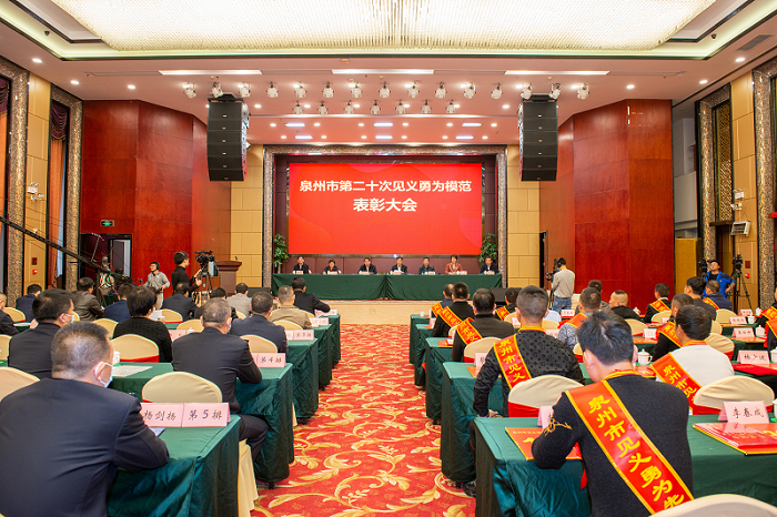 危难时刻挺身而出、见义勇为,他们用行动抒写人间大爱。12月3日下午,泉州市第二十次见义勇为模范表彰大会隆重举行。泉州市委常委、政法委书记黄文胜,省见义勇为人员奖励和保护工作委员会(以下简称“工委会”)副主任、省见义勇为基金会会长傅镛堃,泉州市副市长、公安局长、市“工委会”主任李伙金,市政协党组成员庄灿霞,市人大监察司法工委副主任郭少梅,市政府办公室副主任郑志勇,市“工委会”副主任、市见义勇为协会会长李永木以及市“工委会”各成员单位领导出席会议。