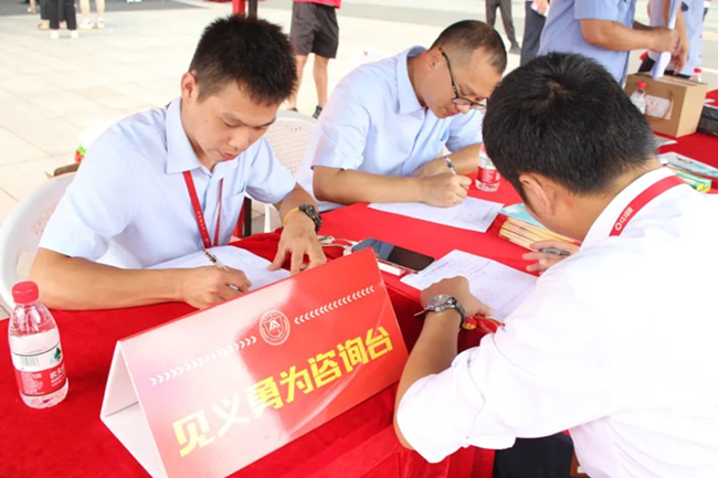 咨询台前,志愿者们耐心地向咨询的群众介绍政府对于见义勇为的奖励和保护措施,在听到志愿者的科普后,市民王先生当场报名加入见义勇为志愿者队伍,在填完报名表格之后,王先生开心地表示:“这下可算找到组织了。”