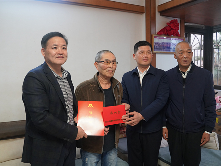 随后,肖进才一行来到见义勇为人员周辉煌家中,周辉煌2008年勇斗抢包歹徒被砍成重伤导致左眼球被摘除,和共同与歹徒搏斗的其他两名人员一起被评定为“福建省见义勇为先进群体”,2023年被诊断出肝癌,通过手术治疗后又检查发现脑血栓,进而引发小脑萎缩,身体平衡能力受损,行动不便。肖进才详细了解周辉煌现在的身体健康状况,对他当年不惧危险勇斗歹徒的见义勇为精神予以赞许,并关心其在生活起居中碰到的困难。肖进才嘱托当地公安机关和见义勇为协会,要多关心、关注见义勇为人员及其亲属,让他们度过一个安心、舒心的春节。