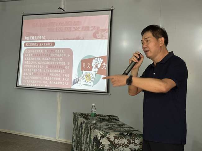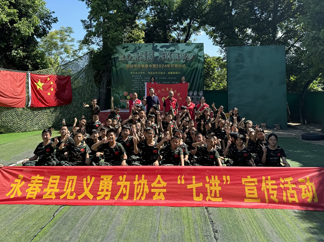 7月21日上午,永春县见义勇为协会会长邱忠义到“集结号”军事夏令营开展见义勇为勇士事迹宣讲活动,见义勇为协会工作人员及志愿者参加活动,一百多名同学和教官聆听了宣讲。