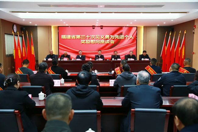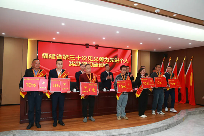 随后,省第三十次见义勇为先进个人奖励慰问座谈会召开,与会领导与爱心企业家对7位上榜的泉州勇士进行奖励慰问,弘扬见义勇为精神,凝聚社会正能量。